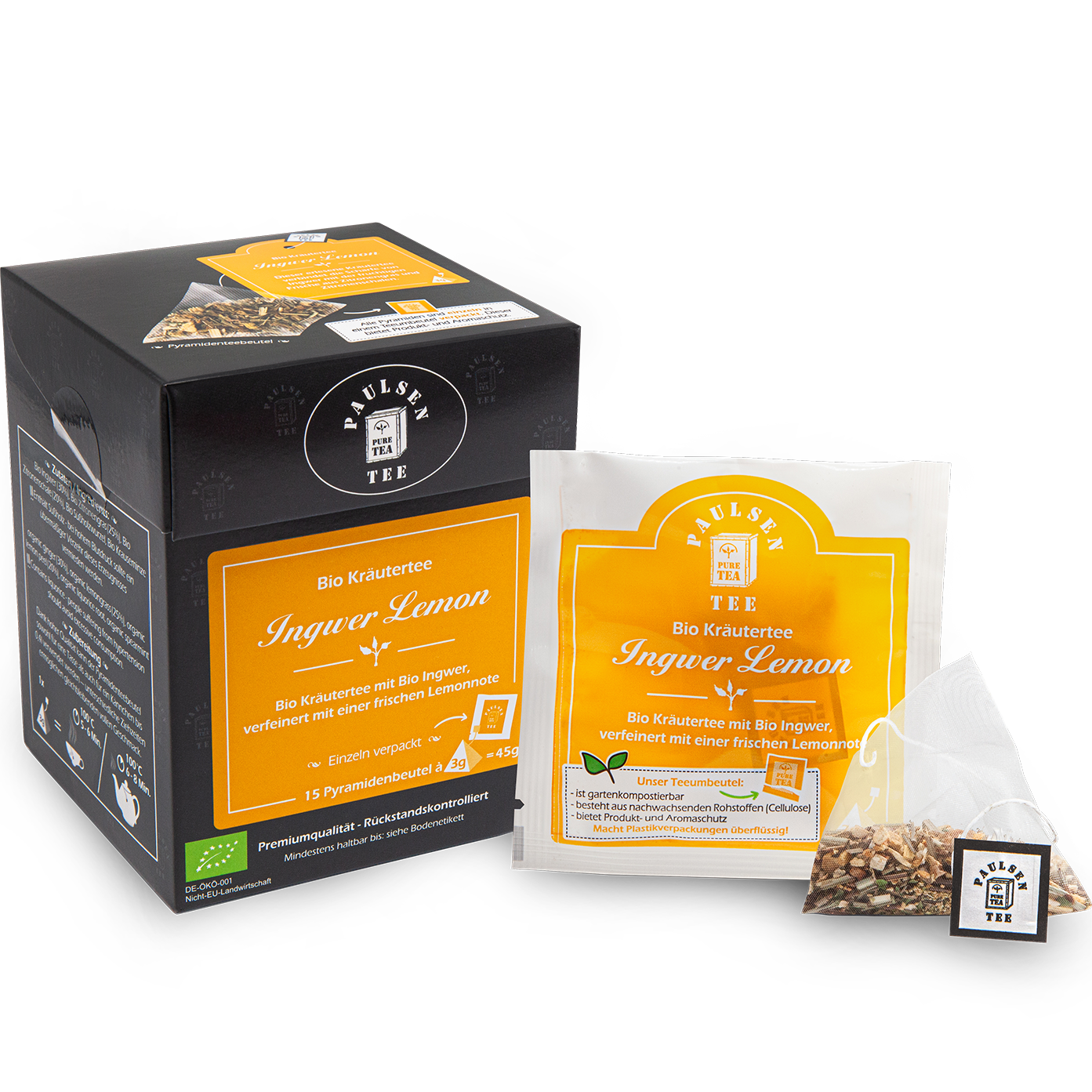 Dieser erlesene Kräutertee verbindet die Schärfe von Ingwer mit der säuerlichen Frische aus Lemongras und Zitronenschalen. Balsamische Süßholzwurzel und aromatische Spearminze runden das köstlichen Aufgussgetränk geschmacklich gekonnt ab. Dank Koffeinfreiheit kann der Teeliebhaber den würzigen Duft und den vielschichtigen Geschmack der ausgesuchten Kräuterteekomposition zu jeder Tageszeit genießen.