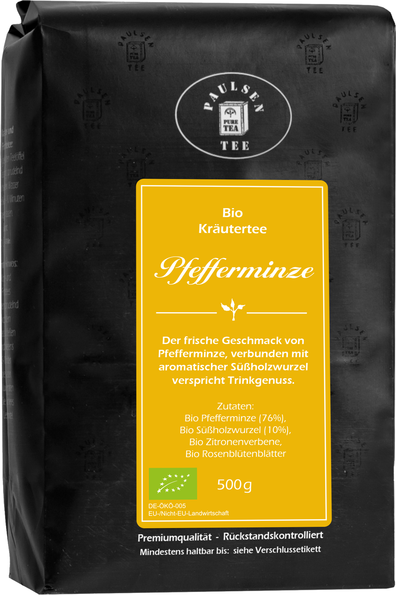 Schonend getrocknete Pfefferminze, balsamisch-süße Süßholzwurzel, feinste Rosenblüten und zitronig schmeckende Verbenenblätter verbinden sich zu einem erstklassigen Kräutertee. Der echte Teeliebhaber gönnt sich das geschmacksintensive Aufgussgetränk heiß aufgebrüht und pur oder leicht gesüßt. Verbinden Sie diesen wohlschmeckenden Trinkgenuss mit einer kleinen Pause von Ihren Alltagsaufgaben, um sich zwischendurch einfach einmal etwas Gutes zu tun. (Öko-Kontrollstelle: DE-ÖKO-005)