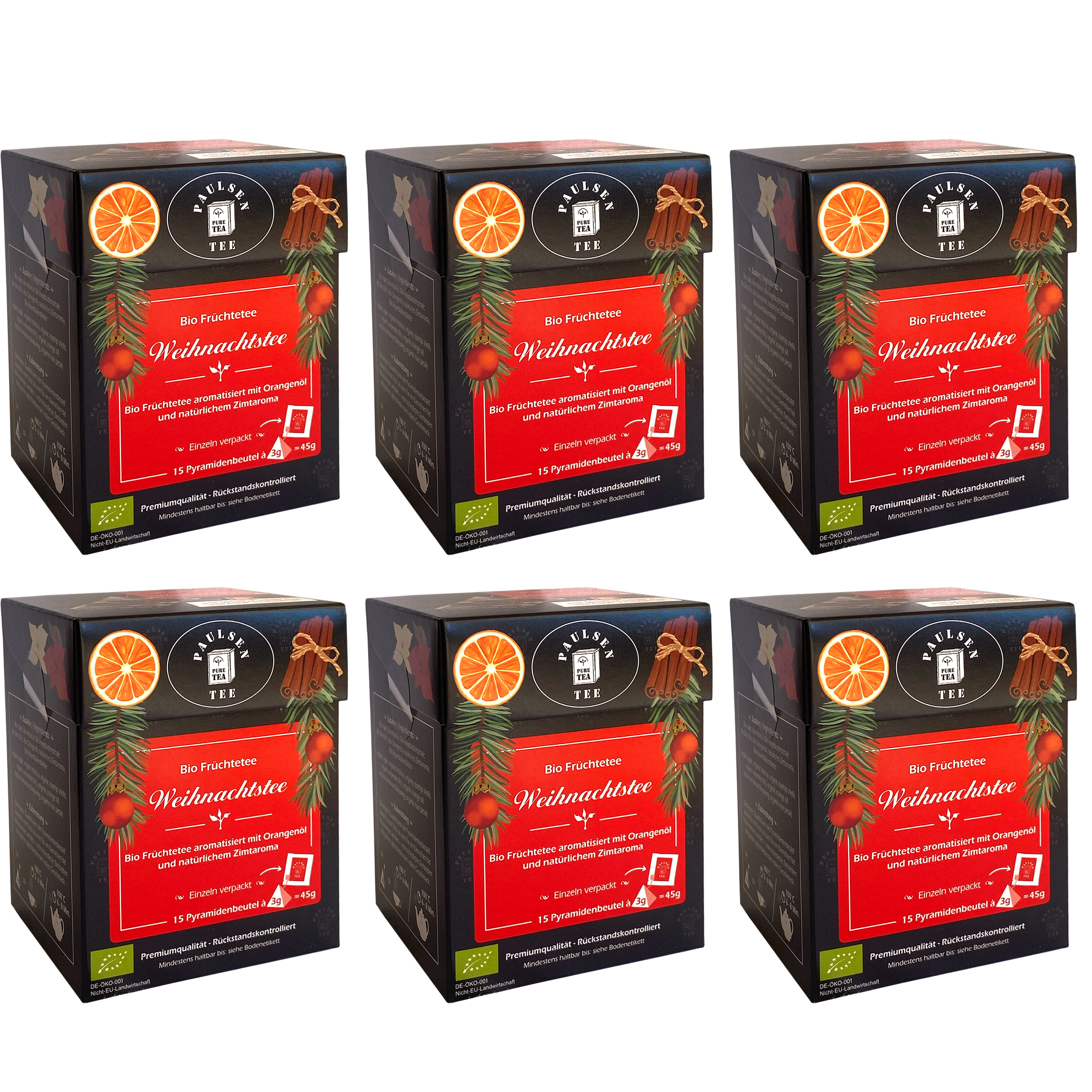 Das Aroma von fruchtigen Orangen und würzigem Zimt macht diesen Früchtetee zum weihnachtlichen Geschmackserlebnis. Genießen Sie den koffeinfreien Bio Weihnachtstee gesüßt oder pur, um sich in eine adventliche Festtagsstimmung zu versetzen.