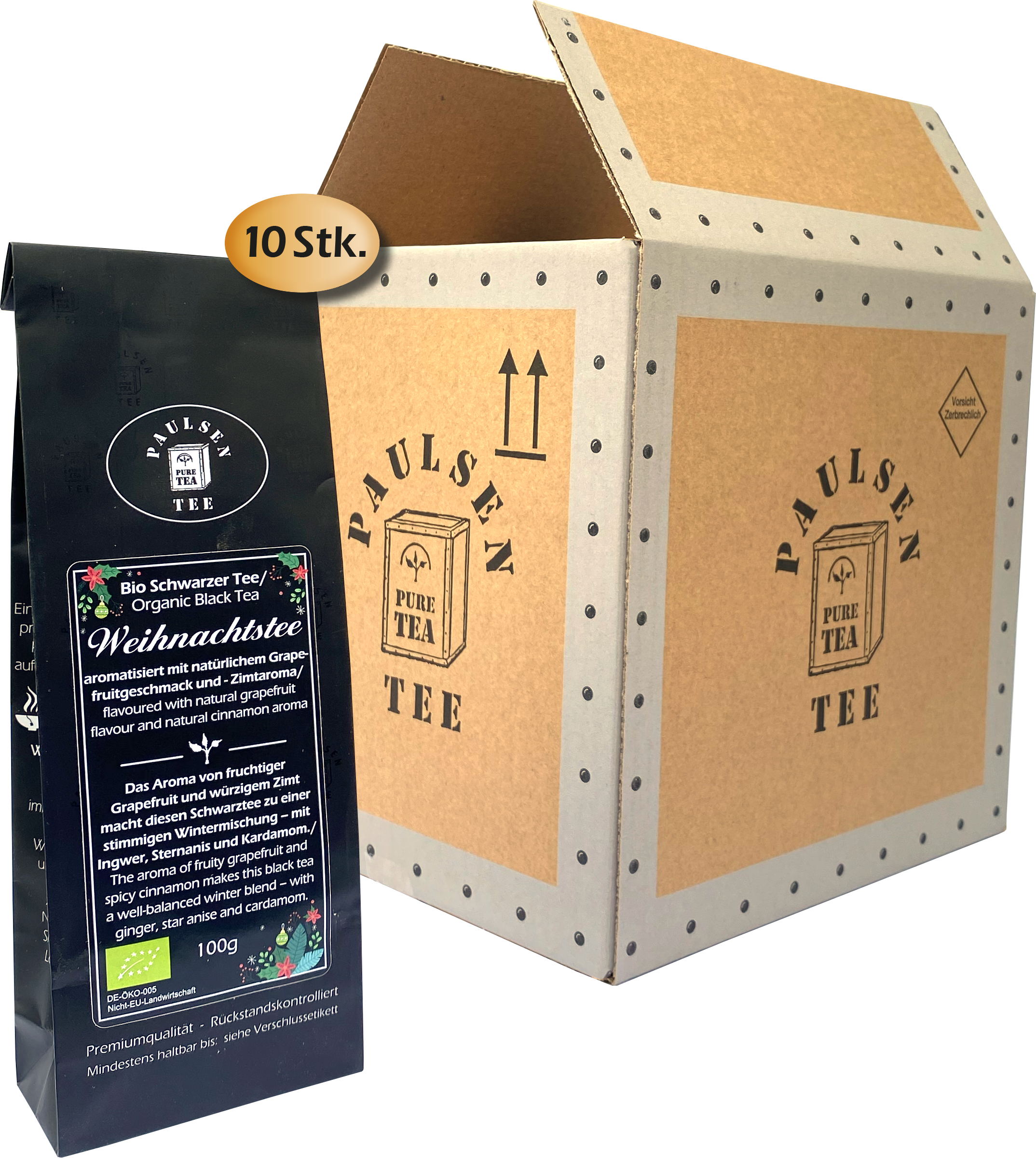 Die 10 Tüten Weihnachtstee befinden sich in einem kleinen Karton mit der Optik einer Original Teekiste und sind auch als Geschenk geeignet.